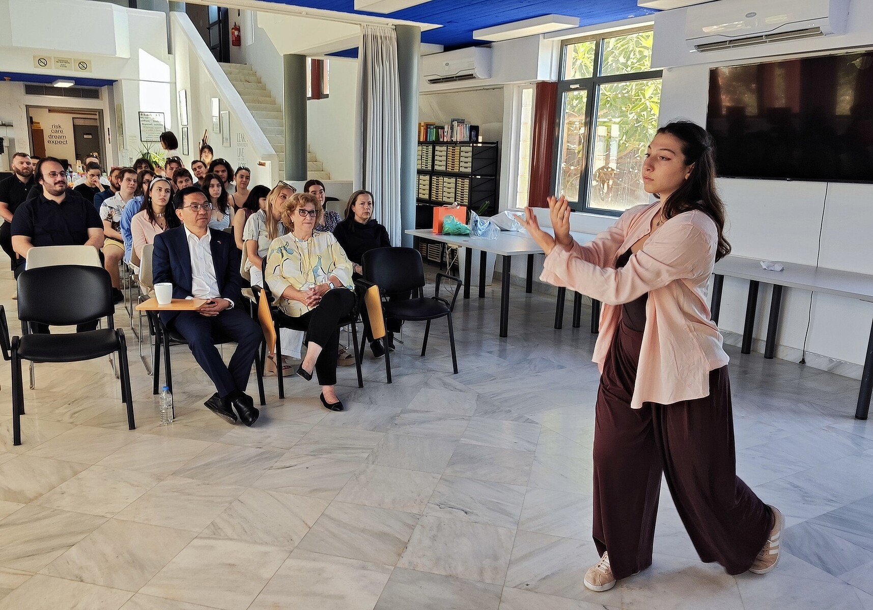 Στις 6 Ιουνίου 2025, το Γλωσσικό Κέντρο είχε την τιμή να φιλοξενήσει τον Εξοχότατο Πρέσβη της Λαϊκής Δημοκρατίας της Κίνας στην Ελλάδα, κ. Fang Qiu. Οι φοιτητές των τμημάτων κινεζικής γλώσσας, υπό την καθοδήγηση της καθηγήτριάς τους, κας Shiheng Zhu, παρουσίασαν τις δεξιότητες και την εκτίμηση που έχουν αποκτήσει για την κινεζική γλώσσα και τον πολιτισμό. Οι φοιτητές, μαζί με άλλους ενδιαφερόμενους προσκεκλημένους, είχαν την ευκαιρία να συνομιλήσουν με τον Πρέσβη σε μια ουσιαστική συζήτηση σχετικά με τις πολιτιστικές σχέσεις μεταξύ Κίνας και Ελλάδας καθώς και εκπαιδευτικές και επαγγελματικές ευκαιρίες μέσω αμοιβαίων συμφωνιών μεταξύ των δύο χωρών. Θα θέλαμε να ευχαριστήσουμε τον Πρέσβη που μοιράστηκε τον χρόνο του μαζί μας και που παρείχε στους φοιτητές μας πολύτιμες γνώσεις και ενθάρρυνση.